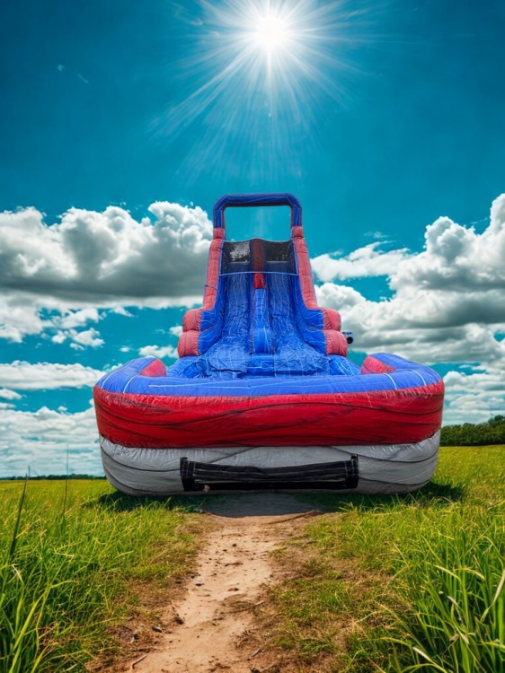Get ready to race, slide, and splash with our 20ft Dual Lane Slide—the ultimate centerpiece for any party! This bold red-and-blue inflatable towers over the fun zone and sends riders zooming down two super-slick lanes for an epic head-to-head thrill ride.